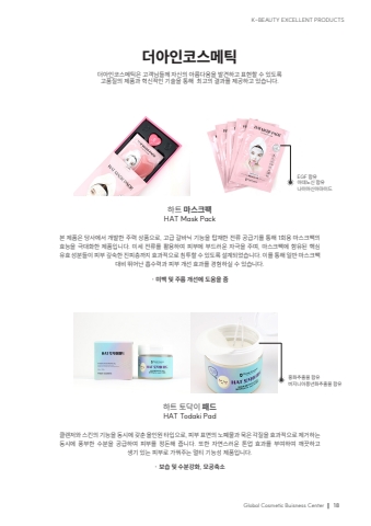K-BEAUTY EXCELLENT PRODUCTSGlobal Cosmetic Buisness Center18%ub354%uc544%uc778%ucf54%uc2a4%uba54%ud2f1%ub354%uc544%uc778%ucf54%uc2a4%uba54%ud2f1%uc740 %uace0%uac1d%ub2d8%ub4e4%uaed8 %uc790%uc2e0%uc758 %uc544%ub984%ub2e4%uc6c0%uc744 %ubc1c%uacac%ud558%uace0 %ud45c%ud604%ud560 %uc218 %uc788%ub3c4%ub85d%uace0%ud488%uc9c8%uc758 %uc81c%ud488%uacfc %ud601%uc2e0%uc801%uc778 %uae30%uc220%uc744 %ud1b5%ud574 %ucd5c%uace0%uc758 %uacb0%uacfc%ub97c %uc81c%uacf5%ud558%uace0 %uc788%uc2b5%ub2c8%ub2e4.%ubcf8 %uc81c%ud488%uc740 %ub2f9%uc0ac%uc5d0%uc11c %uac1c%ubc1c%ud55c %uc8fc%ub825 %uc0c1%ud488%uc73c%ub85c, %uace0%uae09 %uac08%ubc14%ub2c9 %uae30%ub2a5%uc744 %ud0d1%uc7ac%ud55c %uc804%ub958 %uacf5%uae09%uae30%ub97c %ud1b5%ud574 1%ud68c%uc6a9 %ub9c8%uc2a4%ud06c%ud329%uc758 %ud6a8%ub2a5%uc744 %uadf9%ub300%ud654%ud55c %uc81c%ud488%uc785%ub2c8%ub2e4. %ubbf8%uc138 %uc804%ub958%ub97c %ud65c%uc6a9%ud558%uc5ec %ud53c%ubd80%uc5d0 %ubd80%ub4dc%ub7ec%uc6b4 %uc790%uadf9%uc744 %uc8fc%uba70, %ub9c8%uc2a4%ud06c%ud329%uc5d0 %ud568%uc720%ub41c %ud575%uc2ec %uc720%ud6a8 %uc131%ubd84%ub4e4%uc774 %ud53c%ubd80 %uae4a%uc219%ud55c %uc9c4%ud53c%uce35%uae4c%uc9c0 %ud6a8%uacfc%uc801%uc73c%ub85c %uce68%ud22c%ud560 %uc218 %uc788%ub3c4%ub85d %uc124%uacc4%ub418%uc5c8%uc2b5%ub2c8%ub2e4. %uc774%ub97c %ud1b5%ud574 %uc77c%ubc18 %ub9c8%uc2a4%ud06c%ud329%ub300%ube44 %ub6f0%uc5b4%ub09c %ud761%uc218%ub825%uacfc %ud53c%ubd80 %uac1c%uc120 %ud6a8%uacfc%ub97c %uacbd%ud5d8%ud558%uc2e4 %uc218 %uc788%uc2b5%ub2c8%ub2e4.%u00b7 %ubbf8%ubc31 %ubc0f %uc8fc%ub984 %uac1c%uc120%uc5d0 %ub3c4%uc6c0%uc744 %uc90c%ud558%ud2b8 %ub9c8%uc2a4%ud06c%ud329HAT Mask Pack%ud558%ud2b8 %ud1a0%ub2e5%uc774 %ud328%ub4dcHAT Todaki Pad%ud074%ub80c%uc800%uc640 %uc2a4%ud0a8%uc758 %uae30%ub2a5%uc744 %ub3d9%uc2dc%uc5d0 %uac16%ucd98 %uc62c%uc778%uc6d0 %ud0c0%uc785%uc73c%ub85c, %ud53c%ubd80 %ud45c%uba74%uc758 %ub178%ud3d0%ubb3c%uacfc %ubb35%uc740 %uac01%uc9c8%uc744 %ud6a8%uacfc%uc801%uc73c%ub85c %uc81c%uac70%ud558%ub294 %ub3d9%uc2dc%uc5d0 %ud48d%ubd80%ud55c %uc218%ubd84%uc744 %uacf5%uae09%ud558%uc5ec %ud53c%ubd80%ub97c %uc815%ub3c8%ud574 %uc90d%ub2c8%ub2e4. %ub610%ud55c %uc790%uc5f0%uc2a4%ub7ec%uc6b4 %ud1a4%uc5c5 %ud6a8%uacfc%ub97c %ubd80%uc5ec%ud558%uc5ec %uae68%ub057%ud558%uace0 %uc0dd%uae30 %uc788%ub294 %ud53c%ubd80%ub85c %uac00%uafd4%uc8fc%ub294 %uba40%ud2f0 %uae30%ub2a5%uc131 %uc81c%ud488%uc785%ub2c8%ub2e4.%u00b7 %ubcf4%uc2b5 %ubc0f %uc218%ubd84%uac15%ud654, %ubaa8%uacf5%ucd95%uc18cEGF %ud568%uc720%uc544%ub370%ub178%uc2e0 %ud568%uc720%ub098%uc774%uc544%uc2e0%uc544%ub9c8%uc774%ub4dc%ud64d%ud654%ucd94%ucd9c%ubb3c %ud568%uc720%ubc84%uc9c0%ub2c8%uc544%ud48d%ub144%ud654%ucd94%ucd9c%ubb3c %ud568%uc720
