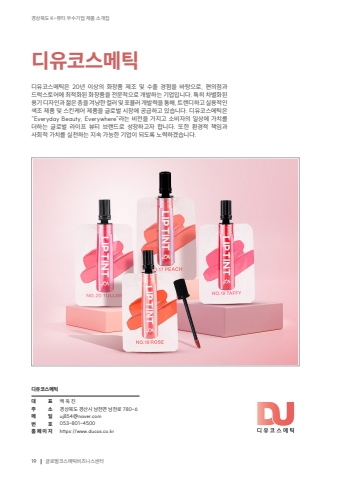19%uacbd%uc0c1%ubd81%ub3c4 K-%ubdf0%ud2f0 %uc6b0%uc218%uae30%uc5c5 %uc81c%ud488 %uc18c%uac1c%uc9d1%uae00%ub85c%ubc8c%ucf54%uc2a4%uba54%ud2f1%ube44%uc988%ub2c8%uc2a4%uc13c%ud130%ub514%uc720%ucf54%uc2a4%uba54%ud2f1%ub300 %ud45c%uc8fc %uc18c%uba54 %uc77c%ubc88 %ud638%ud648%ud398%uc774%uc9c0%ubc31 %uc6b1 %uc9c4%uacbd%uc0c1%ubd81%ub3c4 %uacbd%uc0b0%uc2dc %ub0a8%ucc9c%uba74 %ub0a8%ucc9c%ub85c 780-6 uj854@naver.com053-801-4500https://www.ducos.co.kr%ub514%uc720%ucf54%uc2a4%uba54%ud2f1%ub514%uc720%ucf54%uc2a4%uba54%ud2f1%uc740 20%ub144 %uc774%uc0c1%uc758 %ud654%uc7a5%ud488 %uc81c%uc870 %ubc0f %uc218%ucd9c %uacbd%ud5d8%uc744 %ubc14%ud0d5%uc73c%ub85c, %ud3b8%uc758%uc810%uacfc %ub4dc%ub7ed%uc2a4%ud1a0%uc5b4%uc5d0 %ucd5c%uc801%ud654%ub41c %ud654%uc7a5%ud488%uc744 %uc804%ubb38%uc801%uc73c%ub85c %uac1c%ubc1c%ud558%ub294 %uae30%uc5c5%uc785%ub2c8%ub2e4. %ud2b9%ud788 %ucc28%ubcc4%ud654%ub41c %uc6a9%uae30 %ub514%uc790%uc778%uacfc %uc80a%uc740 %uce35%uc744 %uaca8%ub0e5%ud55c %uceec%ub7ec %ubc0f %ud3ec%ubbac%ub7ec %uac1c%ubc1c%ub825%uc744 %ud1b5%ud574, %ud2b8%ub80c%ub514%ud558%uace0 %uc2e4%uc6a9%uc801%uc778 %uc0c9%uc870 %uc81c%ud488 %ubc0f %uc2a4%ud0a8%ucf00%uc5b4 %uc81c%ud488%uc744 %uae00%ub85c%ubc8c %uc2dc%uc7a5%uc5d0 %uacf5%uae09%ud558%uace0 %uc788%uc2b5%ub2c8%ub2e4. %ub514%uc720%ucf54%uc2a4%uba54%ud2f1%uc740 %u201cEveryday Beauty, Everywhere%u201d%ub77c%ub294 %ube44%uc804%uc744 %uac00%uc9c0%uace0 %uc18c%ube44%uc790%uc758 %uc77c%uc0c1%uc5d0 %uac00%uce58%ub97c %ub354%ud558%ub294 %uae00%ub85c%ubc8c %ub77c%uc774%ud504 %ubdf0%ud2f0 %ube0c%ub79c%ub4dc%ub85c %uc131%uc7a5%ud558%uace0%uc790 %ud569%ub2c8%ub2e4. %ub610%ud55c %ud658%uacbd%uc801 %ucc45%uc784%uacfc %uc0ac%ud68c%uc801 %uac00%uce58%ub97c %uc2e4%ucc9c%ud558%ub294 %uc9c0%uc18d %uac00%ub2a5%ud55c %uae30%uc5c5%uc774 %ub418%ub3c4%ub85d %ub178%ub825%ud558%uaca0%uc2b5%ub2c8%ub2e4.