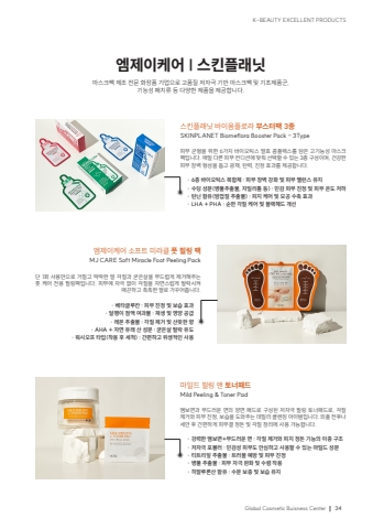 K-BEAUTY EXCELLENT PRODUCTSGlobal Cosmetic Buisness Center34%uc5e0%uc81c%uc774%ucf00%uc5b4 | %uc2a4%ud0a8%ud50c%ub798%ub2db%ub9c8%uc2a4%ud06c%ud329 %uc81c%uc870 %uc804%ubb38 %ud654%uc7a5%ud488 %uae30%uc5c5%uc73c%ub85c %uace0%ud488%uc9c8 %uc800%uc790%uadf9 %uae30%ubc18 %ub9c8%uc2a4%ud06c%ud329 %ubc0f %uae30%ucd08%uc81c%ud488%uad70, %uae30%ub2a5%uc131 %ud328%uce58%ub958 %ub4f1 %ub2e4%uc591%ud55c %uc81c%ud488%uc744 %uc81c%uacf5%ud569%ub2c8%ub2e4.%uc2a4%ud0a8%ud50c%ub798%ub2db %ubc14%uc774%uc634%ud50c%ub85c%ub77c %ubd80%uc2a4%ud130%ud329 3%uc885SKINPLANET Biomeflora Booster Pack - 3Type%ud53c%ubd80 %uade0%ud615%uc744 %uc704%ud55c 6%uac00%uc9c0 %ubc14%uc774%uc624%ud2f1%uc2a4 %ubc1c%ud6a8 %ucf64%ud50c%ub809%uc2a4%ub97c %ub2f4%uc740 %uace0%uae30%ub2a5%uc131 %ub9c8%uc2a4%ud06c %ud329%uc785%ub2c8%ub2e4. %ub9e4%uc77c %ub2e4%ub978 %ud53c%ubd80 %ucee8%ub514%uc158%uc5d0 %ub9de%ucdb0 %uc120%ud0dd%ud560 %uc218 %uc788%ub294 3%uc885 %uad6c%uc131%uc774%uba70, %uac74%uac15%ud55c %ud53c%ubd80 %uc7a5%ubcbd %ud615%uc131%uc744 %ub3d5%uace0 %uad11%ucc44, %ud0c4%ub825, %uc9c4%uc815 %ud6a8%uacfc%ub97c %uc81c%uacf5%ud569%ub2c8%ub2e4.%u00b7 6%uc885 %ubc14%uc774%uc624%ud2f1%uc2a4 %ubcf5%ud569%uccb4 : %ud53c%ubd80 %uc7a5%ubcbd %uac15%ud654 %ubc0f %ud53c%ubd80 %ubc38%ub7f0%uc2a4 %uc720%uc9c0%u00b7 %uc218%ub529 %uc131%ubd84(%ubcd1%ud480%ucd94%ucd9c%ubb3c, %uc790%uc77c%ub9ac%ud1a8 %ub4f1) : %ubbfc%uac10 %ud53c%ubd80 %uc9c4%uc815 %ubc0f %ud53c%ubd80 %uc628%ub3c4 %uc800%ud558%u00b7 %ud0c4%ub2cc %ud568%uc720(%ubc24%uaecd%uc9c8 %ucd94%ucd9c%ubb3c) : %ud53c%uc9c0 %ucf00%uc5b4 %ubc0f %ubaa8%uacf5 %uc218%ucd95 %ud6a8%uacfc%u00b7 LHA + PHA : %uc21c%ud55c %uac01%uc9c8 %ucf00%uc5b4 %ubc0f %ube14%ub799%ud5e4%ub4dc %uac1c%uc120%uc5e0%uc81c%uc774%ucf00%uc5b4 %uc18c%ud504%ud2b8 %ubbf8%ub77c%ud074 %ud48b %ud544%ub9c1 %ud329MJ CARE Soft Miracle Foot Peeling Pack%ub2e8 1%ud68c %uc0ac%uc6a9%ub9cc%uc73c%ub85c %uac70%uce60%uace0 %ub531%ub531%ud55c %ubc1c %uac01%uc9c8%uacfc %uad73%uc740%uc0b4%uc744 %ubd80%ub4dc%ub7fd%uac8c %uc81c%uac70%ud574%uc8fc%ub294 %ud48b %ucf00%uc5b4 %uc804%uc6a9 %ud544%ub9c1%ud329%uc785%ub2c8%ub2e4. %ud53c%ubd80%uc5d0 %uc790%uadf9 %uc5c6%uc774 %uac01%uc9c8%uc744 %uc790%uc5f0%uc2a4%ub7fd%uac8c %ud0c8%ub77d%uc2dc%ucf1c %ub9e4%ub048%ud558%uace0 %ucd09%ucd09%ud55c %ubc1c%ub85c %uac00%uafb8%uc5b4%uc90d%ub2c8%ub2e4.%u00b7 %ubca0%ud0c0%uae00%ub8e8%uce78 : %ud53c%ubd80 %uc9c4%uc815 %ubc0f %ubcf4%uc2b5 %ud6a8%uacfc%u00b7 %ub2ec%ud33d%uc774 %uc810%uc561 %uc5ec%uacfc%ubb3c : %uc7ac%uc0dd %ubc0f %uc601%uc591 %uacf5%uae09%u00b7 %ub808%ubaac %ucd94%ucd9c%ubb3c : %uac01%uc9c8 %uc81c%uac70 %ubc0f %uc0b0%ub73b%ud55c %ud5a5%u00b7 AHA + %uc790%uc5f0 %uc720%ub798 %uc0b0 %uc131%ubd84 : %uad73%uc740%uc0b4 %ud0c8%ub77d %uc720%ub3c4%u00b7 %uc6cc%uc2dc%uc624%ud504 %ud0c0%uc785(%ucc29%uc6a9 %ud6c4 %uc138%ucc99) : %uac04%ud3b8%ud558%uace0 %uc704%uc0dd%uc801%uc778 %uc0ac%uc6a9%ub9c8%uc77c%ub4dc %ud544%ub9c1 %uc564 %ud1a0%ub108%ud328%ub4dcMild Peeling & Toner Pad%uc5e0%ubcf4%uba74%uacfc %ubd80%ub4dc%ub7ec%uc6b4 %uba74%uc758 %uc591%uba74 %ud328%ub4dc%ub85c %uad6c%uc131%ub41c %uc800%uc790%uadf9 %ud544%ub9c1 %ud1a0%ub108%ud328%ub4dc%ub85c, %uac01%uc9c8 %uc81c%uac70%uc640 %ud53c%ubd80 %uc9c4%uc815, %ubcf4%uc2b5%uc744 %ub3c4%uc640%uc8fc%ub294 %ub370%uc77c%ub9ac %ud074%ub80c%uc9d5 %uc544%uc774%ud15c%uc785%ub2c8%ub2e4. %uc678%ucd9c %uc804%ud6c4%ub098 %uc138%uc548 %ud6c4 %uac04%ud3b8%ud558%uac8c %ud53c%ubd80%uacb0 %uc815%ub3c8 %ubc0f %uac01%uc9c8 %uc815%ub9ac%uc5d0 %uc0ac%uc6a9 %uac00%ub2a5%ud569%ub2c8%ub2e4.%u00b7 %uac15%ub825%ud55c %uc5e0%ubcf4%uba74+%ubd80%ub4dc%ub7ec%uc6b4 %uba74 : %uac01%uc9c8 %uc81c%uac70%uc640 %ud53c%uc9c0 %uc815%ub3c8 %uae30%ub2a5%uc758 %uc774%uc911 %uad6c%uc870%u00b7 %uc800%uc790%uadf9 %ud3ec%ubbac%ub7ec : %ubbfc%uac10%uc131 %ud53c%ubd80%ub3c4 %uc548%uc2ec%ud558%uace0 %uc0ac%uc6a9%ud560 %uc218 %uc788%ub294 %ub9c8%uc77c%ub4dc %uc131%ubd84%u00b7 %ud2f0%ud2b8%ub9ac%uc78e %ucd94%ucd9c%ubb3c : %ud2b8%ub7ec%ube14 %uc608%ubc29 %ubc0f %ud53c%ubd80 %uc9c4%uc815%u00b7 %ubcd1%ud480 %ucd94%ucd9c%ubb3c : %ud53c%ubd80 %uc790%uadf9 %uc644%ud654 %ubc0f %uc218%ub834 %uc791%uc6a9%u00b7 %ud788%uc54c%ub8e8%ub860%uc0b0 %ud568%uc720 : %uc218%ubd84 %ubcf4%ucda9 %ubc0f %ubcf4%uc2b5 %uc720%uc9c0