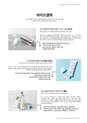 K-BEAUTY EXCELLENT PRODUCTSGlobal Cosmetic Buisness Center36%ubc14%uc774%uc624%uc140%ub809%ubc14%uc774%uc624%uc140%ub809%uc740 %uc790%uc5f0%uacfc %uc0ac%ub78c%uacfc %ub3d9%ubb3c%uc744 %uc0ac%ub791%ud558%ub294 %ubbfc%uac10, %uc9c4%uc815, %ubcf4%uc2b5 %uc804%ubb38%uc720%ub7fdVIVA %ube44%uac74%uc778%uc99d %uce5c%ud658%uacbd %ube0c%ub79c%ub4dc%uc785%ub2c8%ub2e4.%ubc14%uc774%uc624%uc140%ub809 %ub8e8%ubbf8%uc5d0%ub974 %ub370%ud321%uc2a4 %uc544%uc774%uc2a4%ud06c%ub9bc %uc120%uc2a4%ud2f1BIO CELLEC Lumiere Defense Icecream Sun Stick28.89% %uc218%ubd84 %ud3ec%ubbac%ub7ec%ub85c %uc624%uc77c%ub9ac%ud568 %uc5c6%uc774 %uc0b0%ub73b%ud558%uba70, SPF50+, PA+++%uc758 %uc790%uc678%uc120 %ucc28%ub2e8 %uae30%ub2a5%uc740 %ubb3c%ub860 %ubbf8%ubc31%u00b7%uc8fc%ub984 %uac1c%uc120 3%uc911 %uae30%ub2a5%uc131 %uc778%uc99d%uc744 %ubc1b%uc558%uace0, Soothing Cooler %ud2b9%ud5c8 %uc131%ubd84%uacfc Sol-Gel %uae30%uc220%uc744 %ud1b5%ud574 %uc5ec%ub984%ucca0 %ud53c%ubd80 %uc5f4%uac10%uc744 %ud6a8%uacfc%uc801%uc73c%ub85c %ub0ae%ucdb0%uc8fc%uba70, %ubaa8%uacf5 %ucf00%uc5b4 %ubc0f %ud53c%uc9c0 %uc870%uc808%ub85c %uc5ec%ub7ec %ubc88 %ub367%ubc1c%ub77c%ub3c4 %uae54%ub054%ud55c %uc0ac%uc6a9%uac10%uc744 %uc81c%uacf5%ud569%ub2c8%ub2e4.%u00b7 %ubc31%ud0c1 %ub048%uc801%uc784 %ubc88%ub4e4%uac70%ub9bc %uc5c6%ub294 %uc218%ubd84%uac00%ub4dd%ud55c %uac00%ubcbc%uc6b4 %uc120%uc2a4%ud2f1%u00b7 %uc790%uc678%uc120 %uac15%ub3c4 %uccb4%ud06c %uae30%uc220 %uc2a4%ud2f0%ucee4 %uc801%uc6a9%u00b7 3%uc911 %uae30%ub2a5%uc131(%ubbf8%ubc31, %uc8fc%ub984%uac1c%uc120, %uc790%uc678%uc120 %ucc28%ub2e8)%u00b7 %uc218%ub529%ucfe8%ub7ec %ud2b9%ud5c8%uc131%ubd84 %uc801%uc6a9%ubc14%uc774%uc624%uc140%ub809 %uc13c%ud154%ub77c %ucfe8%ub9c1 %ud1a4%uc5c5 %uc120%ud06c%ub9bcBIO CELLEC Centella Cooling Tone-up Sun CreamSPF50+, PA++++%uc758 %uac15%ub825%ud55c %uc790%uc678%uc120 %ucc28%ub2e8 %uae30%ub2a5%uc744 %uac16%ucd98 %ubbf8%ubc31%u00b7%uc8fc%ub984 %uac1c%uc120 3%uc911 %uae30%ub2a5%uc131 %uc81c%ud488%uc73c%ub85c, %uc13c%ud154%ub77c %ucd94%ucd9c%ubb3c %uae30%ubc18 %ucfe8%ub9c1 %ud3ec%ubbac%ub7ec%ub85c %ud53c%ubd80 %uc5f4%uac10%uc744 %uc9c4%uc815%uc2dc%ud0a4%uace0, %uc790%uc5f0%uc2a4%ub7ec%uc6b4 %ud1a4%uc5c5%ud6a8%uacfc%uc5d0 %ub048%uc801%uc784 %uc5c6%ub294 %ucd09%ucd09%ud55c %ub9c8%ubb34%ub9ac%uac10%uc744 %uc120%uc0ac%ud569%ub2c8%ub2e4.%u00b7 %ub9d1%uace0 %ud654%uc0ac%ud55c %uc0dd%uae30%uc788%ub294 %ud1a4%uc5c5%uc774 %uac00%ub2a5%ud55c %uc13c%ud154%ub77c %ucfe8%ub9c1 %ube44%ud0c0%ubbfc %ud1a4%uc5c5 %uc120%ud06c%ub9bc %u00b7 %uc790%uc678%uc120 %uac15%ub3c4 %uccb4%ud06c %uc778%uc1c4 %uc6a9%uae30 %uc801%uc6a9%u00b7 3%uc911 %uae30%ub2a5%uc131(%ubbf8%ubc31, %uc8fc%ub984%uac1c%uc120, %uc790%uc678%uc120 %ucc28%ub2e8)%u00b7 %uc218%ub529%ucfe8%ub7ec %ud2b9%ud5c8%uc131%ubd84 %uc801%uc6a9%ubc14%uc774%uc624%uc140%ub809 %ud5e4%ub9ac%ud2f0%uc9c0 %uc138%ub77c%ub2e4%uc774%uc544 %uc570%ud50cBIO CELLEC Heritage Cera-dia Ampoule%ube44%uac74 %uc778%uc99d %ubc0f %ub17c%ucf54%uba54%ub3c4%uc81c%ub2c9 %ud14c%uc2a4%ud2b8%ub97c %uc644%ub8cc%ud55c %uc62c%uc778%uc6d0 %uc548%ud2f0%uc5d0%uc774%uc9d5 %uc570%ud50c%ub85c, %ubc14%uc774%uc624%uc140%ub809 %ub3c5%uc790 %uae30%uc220%uc778 %u2018%ucfe8%ub9c1 %ud37c%ud399%ud2b8 %ub208%uaf43 %ube44%ub4dc%u2019%uac00 %ud53c%ubd80%uc5d0 %ub2ff%ub294 %uc989%uc2dc %uc138%ub77c%ub9c8%uc774%ub4dc%uc640 %ub2e4%uc774%uc544%ubaac%ub4dc %ucd94%ucd9c%ubb3c%uc744 %uc804%ub2ec%ud574 %uc989%uac01%uc801%uc778 %ucfe8%ub9c1%u00b7%ubcf4%uc2b5%u00b7%uad11%ucc44 %ud6a8%uacfc%ub97c %uc8fc%uba70, %ubbf8%ubc31%u00b7%uc8fc%ub984 %uac1c%uc120%u00b7%ud0c4%ub825%uac15%ud654 %ub4f1 8%uac00%uc9c0 %uae30%ub2a5%uc73c%ub85c %uc18d%ub2f9%uae40 %uc5c6%uc774 %ub9e4%ub044%ub7ec%uc6b4 %ud53c%ubd80%uacb0%uc744 %uc644%uc131%ud574%uc90d%ub2c8%ub2e4.%u00b7 %uc138%ub77c%ub9c8%uc774%ub4dc%uc640 %ub2e4%uc774%uc544%ubaac%ub4dc %uae30%ubc18 %ub208%uaf43%ube44%ub4dc%uc758 8%uac00%uc9c0 %ud14c%ub77c%ud53c %ud6a8%uacfc%u00b7 %ub2e4%uc774%uc544%ubaac%ub4dc %ubd80%uc2a4%ud305, %ubbf8%ubc31, %uc8fc%ub984%uac1c%uc120, %ubcf4%uc2b5, %ud56d%uc0b0%ud654, %ucfe8%ub9c1, %ube44%ud0c0%ubbfc, %uc9c4%uc815%u00b7 %uace0%ud568%ub7c9 %uc138%ub77c%ub9c8%uc774%ub4dc 10,500ppm%uc758 %ud06c%ub9bc%ucea1%uc290 %ud14d%uc2a4%ucc98 %uae30%uc220 %uc801%uc6a9