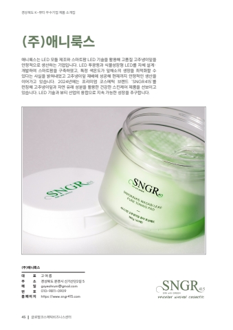 45%uacbd%uc0c1%ubd81%ub3c4 K-%ubdf0%ud2f0 %uc6b0%uc218%uae30%uc5c5 %uc81c%ud488 %uc18c%uac1c%uc9d1%uae00%ub85c%ubc8c%ucf54%uc2a4%uba54%ud2f1%ube44%uc988%ub2c8%uc2a4%uc13c%ud130(%uc8fc)%uc560%ub2c8%ub8e9%uc2a4%ub300 %ud45c%uc8fc %uc18c%uba54 %uc77c%ubc88 %ud638%ud648%ud398%uc774%uc9c0%uace0 %uc5ec %ub984%uacbd%uc0c1%ubd81%ub3c4 %ubb38%uacbd%uc2dc %uc2e0%uae30%uc0b0%ub2e82%uae38 5goyeahrum@gmail.com010-9811-0909https://www.sngr415.com(%uc8fc)%uc560%ub2c8%ub8e9%uc2a4%uc560%ub2c8%ub8e9%uc2a4%ub294 LED %ubaa8%ub4c8 %uc81c%uc870%uc640 %uc2a4%ub9c8%ud2b8%ud31c LED %uae30%uc220%uc744 %ud65c%uc6a9%ud574 %uace0%ud488%uc9c8 %uace0%ucd94%ub0c9%uc774%uc78e%uc744 %uc548%uc815%uc801%uc73c%ub85c %uc0dd%uc0b0%ud558%ub294 %uae30%uc5c5%uc785%ub2c8%ub2e4. LED %ud22c%uad11%ub4f1%uacfc %uc2dd%ubb3c%uc131%uc7a5%ud615 LED%ub97c %uc790%uccb4 %uc124%uacc4%u00b7%uac1c%ubc1c%ud558%uc5ec %uc2a4%ub9c8%ud2b8%ud31c%uc744 %uad6c%ucd95%ud558%uc600%uace0, %ud2b9%uc815 %uc0c9%uc628%ub3c4%uac00 %uc78e%ucc44%uc18c%uc758 %uc0dd%uc7a5%uc744 %ucd5c%uc801%ud654%ud560 %uc218 %uc788%ub2e4%ub294 %uc0ac%uc2e4%uc744 %ubc1d%ud600%ub0b4%uc5c8%uace0 %uace0%ucd94%ub0c9%uc774%uc78e %uc7ac%ubc30%uc5d0 %uc131%uacf5%ud574 %ud604%uc7ac%uae4c%uc9c0 %uc548%uc815%uc801%uc778 %uc0dd%uc0b0%uc744 %uc774%uc5b4%uac00%uace0 %uc788%uc2b5%ub2c8%ub2e4. 2024%ub144%uc5d0%ub294 %ud504%ub9ac%ubbf8%uc5c4 %ucf54%uc2a4%uba54%ud2f1 %ube0c%ub79c%ub4dc %u2018SNGR415%u2019%ub97c %ub7f0%uce6d%ud574 %uace0%ucd94%ub0c9%uc774%uc78e%uacfc %uc790%uc5f0 %uc720%ub798 %uc131%ubd84%uc744 %ud65c%uc6a9%ud55c %uac74%uac15%ud55c %uc2a4%ud0a8%ucf00%uc5b4 %uc81c%ud488%uc744 %uc120%ubcf4%uc774%uace0 %uc788%uc2b5%ub2c8%ub2e4. LED %uae30%uc220%uacfc %ubdf0%ud2f0 %uc0b0%uc5c5%uc758 %uc735%ud569%uc73c%ub85c %uc9c0%uc18d %uac00%ub2a5%ud55c %uc131%uc7a5%uc744 %ucd94%uad6c%ud569%ub2c8%ub2e4.